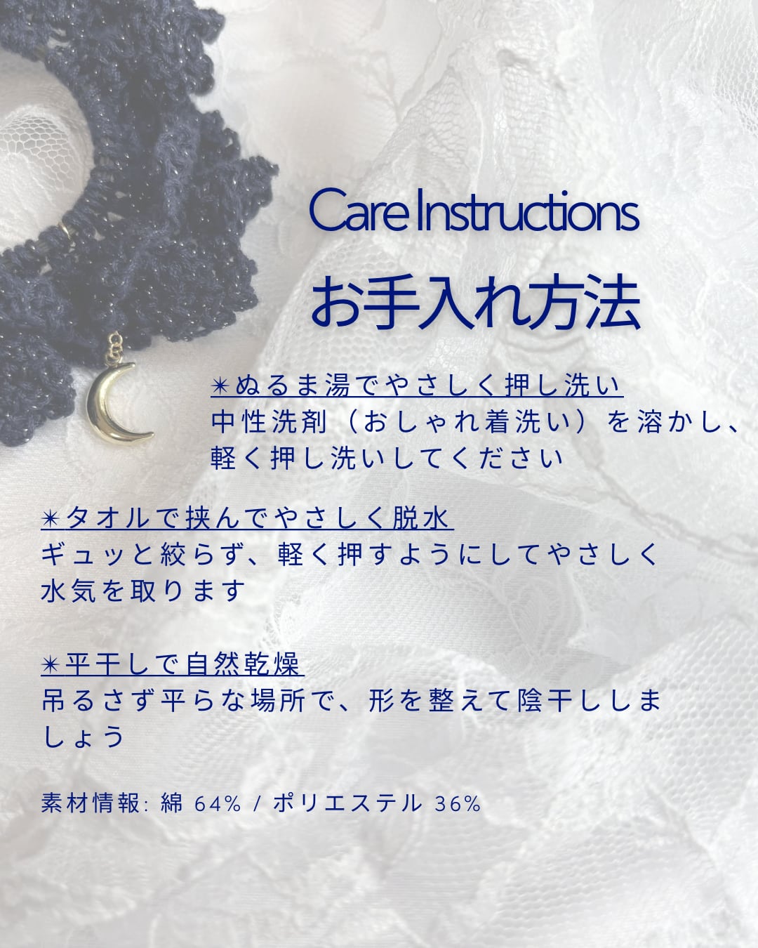 ・繊細な作りのため、チェーンやモチーフを強く引っ張らないようご注意ください。
